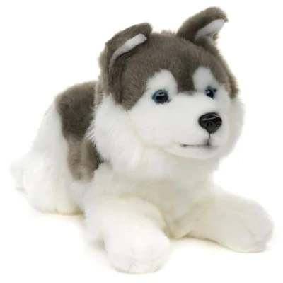 Uni Toys Husky Grey, Lying Down 31 cm (Length) Plush Dog Toy, Cuddly Toy