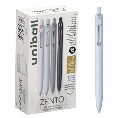 Uniball Zento Gel Ink Rollerball Pens, 12 Black Medium Point Smooth Writing Colored Japanese Zen Colors