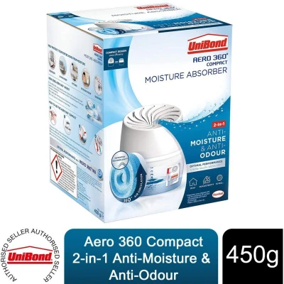 The UniBond AERO 360 Compact Moisture Absorber is designed to protect your home from excess moisture and its associated consequences. With a focus on creating a healthy indoor climate, this compact dehumidifier and odour neutraliser employs 360° air circulation to effectively absorb moisture, tackling common damp issues such as condensation, mould, and musty smells.