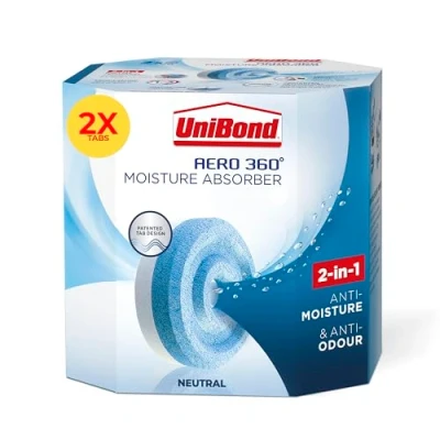 Moisture & Odour control – The AERO 360° moisture absorber and the UniBond AERO 360 refill tabs offer a simple solution to effectively absorb excess moisture and to neutralise bad smells in your home 2-in-1 – Patented wave-shaped UniBond refill tab to maximise air circulation combined with ultra-absorbing active crystals and patented anti-odour agents to prevent damp problems and musty smells Long-Lasting – One 360 dehumidifier refill tab lasts up to 3 months and is ideal for rooms up to 20m²* Universal use – The UniBond AERO 360° damp absorber refill tabs easily fit in most humidity absorber devices with a capacity of at least 450g Package Contents – UniBond AERO 360° Moisture Absorber Neutral Refill Tab, for highly efficient moisture absorption, 2 x 450g refills for the AERO 360° and most other devices with a capacity of ≥ 450g, Weight: 2.12305158306 pounds, Manufacturer: Henkel