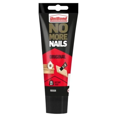 EurofficeUniBond No More Nails Original Tube 175ml 3031045. Adhesive glue for DIY and repair jobs. Eliminates the need for nails and screws. Suitable for use on wood, ceramic, metal, concrete, brick, plaster, stone, and most plastics.