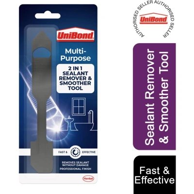General description The UniBond Sealant Remover and Smoother Tool is a durable 2-in-1 tool made from tough plastic, designed for easy removal and smoothing of sealant. It features a sharp end for removing all types of sealant without damaging surfaces and a flat edge for achieving a smooth, professional finish. Technical specifications Material: Tough plastic Design: 2-in-1 tool with a sharp removal end and a flat smoothing edge Compatibility and accessories Suitable for all types of sealant and surfaces Installation No installation required; simply use the tool directly on sealant beads for removal or smoothing. Usage Push the pointed end into the sealant and push forward to remove old sealant beads. Apply new sealant to the joint, then select the desired smoothing profile. Place the tool at the start of the sealant bead and press down firmly. Move the tool at a uniform rate to achieve a smooth, professional finish. Other information Designed to prevent surface damage or scratches