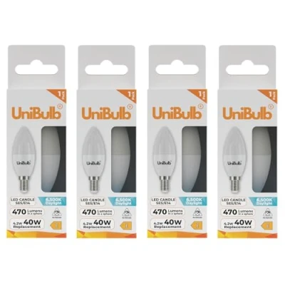 Unibulb E14 SES LED Candle Bulbs, 470 Lumens, Daylight 6500K, 4.9W 40W Equivalent/Replacement, Pack of 4