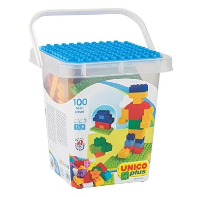 Compatible with well-known building bricks Contains green, yellow, red and blue bricks The lid is a great base Unicoplus 100 bucket compatible with well-known building bricks; contains green, yellow, red and blue bricks; the lid is an excellent base, Manufacturer: Androni Giocattoli