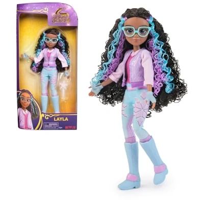 OFFICIAL LAYLA 24CM DOLL WITH HIGHLIGHTED HAIR: Based on the popular NETFLIX show and best-selling kids’ books, Layla comes to life with true-to-show character details, curly hair and 9 points of articulation for endless poses AUTHENTIC DOLL ACCESSORIES: Style Layla’s highlighted hair with the hair tool and discover her doll clothes — quilted vest, purple and blue riding trousers with her unicorn, Glacier’s magic markings, glasses, riding boots and gloves FANTASTICAL STORYTELLING: With Sophia, Ava, Isabel, Layla and Valentina dolls and accessories (girl toys each sold separately), girls can recreate pretend play stories inspired by the show COLLECT THEM ALL: Unicorn Academy fashion dolls and unicorns (toys sold separately) will spark imaginative play. Fun unicorn gifts, birthday gifts and gifts for any occasion Includes: 1 Doll, 5 Removable Fashion Pieces, 1 Hair Styling Tool BRING THE ADVENTURE HOME: Expand your Unicorn Academy world with dolls, unicorns, small dolls, stuffed animals, plushies and more. Exciting unicorn toys for girls aged 4–6 and up, Manufacturer: Spin Master