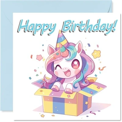 Unicorn Birthday Cards Animal Gifts Happy Card for Son Daughter Brother Sister Grandson Granddaughter Niece Nephew Cousin, 145mm Bday Greeting