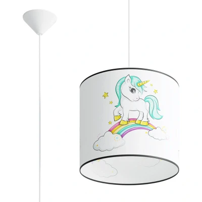 SINGLE HORSE pendant lampLooking for the perfect pendant lamp for your child's room? You don't have to any longer! The SINGLE HORSE steals every heart and enlivens the space with expressive colours, transporting children to another world. Little ones will feel like they are in a fairy tale! Boring lighting? Never again!Single-coloured, elegant, minimalist - such lamps are nice, but will they appeal to children? We doubt it! That's why we have designed something completely different for them - a fairytale world that they often dream about at night. Now it can also be present on waking, with their favourite characters right in their rooms!The perfect interior decoration The SINGLE HORSE pendant lamp is not only functional, but also extremely aesthetically pleasing, making it an ideal interior decoration. It will blend in perfectly with colourful furniture or patterned walls. Balanced designThe combination of the vivid colours of the characters with the light background and the simple,