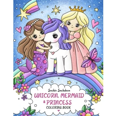 Unicorn, Mermaid and Princess Coloring Book: 50 Super Cute, Fun Magical Pages for Girls, Kids Ages 4 8