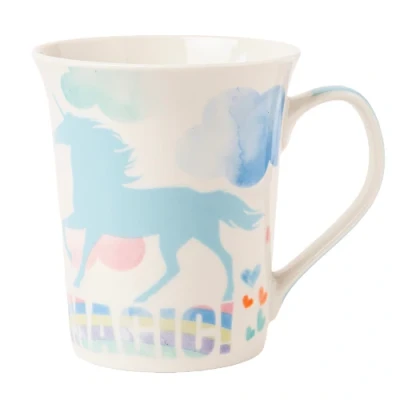 Bring a touch of magic to your tea or coffee break with these charming 350ml unicorn mugs. Each features a whimsical pastel unicorn design, soft rainbow hues, and sweet slogans that brighten your day.. 350ml bone china mug – perfect for tea, coffee, hot chocolate. 4 assorted designs with unicorns, hearts, and rainbow slogans. Pastel colour palette with glossy finish and curved handle. Made from lightweight yet durable bone china. Great as gifts for kids, teens, unicorn lovers or stationery-style décor fans. Dimension H 10.5cm x W 9cm approx