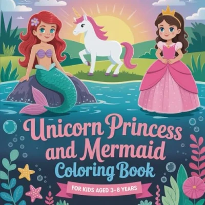 Unicorn Princess and Mermaid coloring Book for kids aged 3 8 years: 50 bold easy magical pages creative to encourage fine motor skills creativity, Cute fun design.
