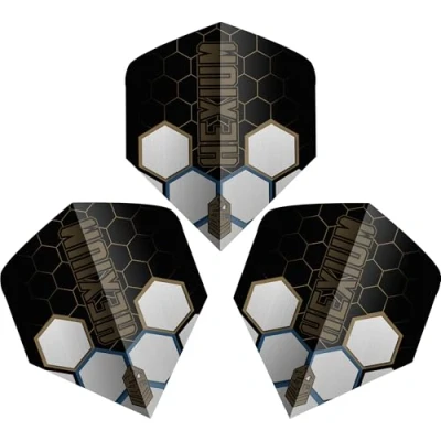Unicorn Ultrafly Hexium Darts Flights Black Gold & Silver Hexagon Design Big Wing Shape Durable 100 Micron Polyester PET Set of 3