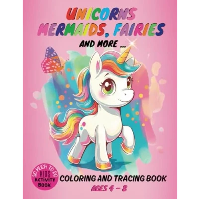 Unicorns, mermaids, fairies and more: Coloring Tracing book for Kids ages 4 8
