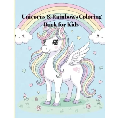 Unicorns & Rainbows Coloring Book for Kids: 30 Cute and Magical Unicorn Pages with Rainbows, Clouds, Fantasy Backgrounds Girls Ages 38