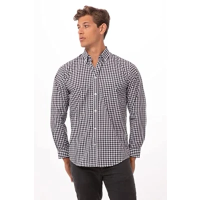 Uniform Works B219 XL Men's Gingham Shirt, Black