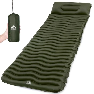 Comfortable & Stability: The sleeping pad's wave air tubes support your weight, keep you comfortably cradled in the middle of the pad, you won't bottom out if you roll on your side. 2Inch thickness of cushioning provide unrivaled comfort, stability and support, great for sleeping in any position. Durability & Warm: The durable 40-denier ripstop nylon polyester with TPU coating helps prevent tearing, offers the right balance between low weight and durability. You don't need to worry about punctures or leaks. Thickness material limit heat loss for better support and warmth (R-value 1.3). Ultralight & Ultra-compact: Unigear sleeping pad with ultralight weight(Only 507g/1.1lb) and compact packed to the size of a 1-liter water bottle, Inflated size is 187cm(L)x66cm(W)x5.5cm(H), which is ideal for outdoor activity like fast-and-light backpacking, traveling or camping. Easy to Inflate & Deflate: This sleeping mat with one way valves for inflation and deflation, blowing air into this inflatable sleeping pad really is a breeze! Which allows quick to inflate (10-15 breaths) and super fast deflate(only one second). Includes repair kit with 4 self-adhesive patches for fixing punctures in the field. AFTER-SALES SERVICE: If you meet any problems, please contact us at any time.We will offer you a solution as soon as possible.