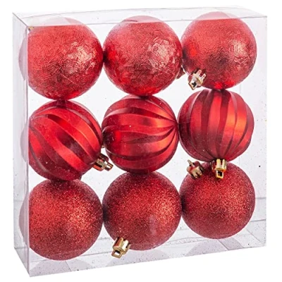 UNIMASA Set of 9 Baubles 60 mm Red with Different Textures Adds Elegant Shine to Your Christmas Decoration, Multi Colour, Not Applicable