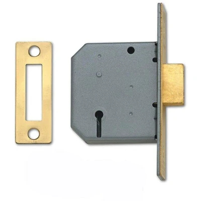 General description The Union 2177 3 lever mortice deadlock is designed for timber doors, suitable for doors up to 54mm thick. It features a polished brass finish and a matching striking plate, providing reliable security with a standard level of protection through its 3-lever mechanism. The deadbolt can be operated by a key from either side and includes a 12.5mm anti-saw deadbolt for enhanced security. Technical specifications Finish: Polished Brass Case Size: 65mm x 70mm (2.5 inches) Backset: 44.5mm (distance from door edge to center of keyhole) Deadbolt: Brass with hardened steel rollers Security Level: Standard (3 levers) Keying: Supplied with 2 keys; keying groups may be matched or differ with other models Compatibility and accessories Compatible with rebate kits (13mm, 19mm, or 25mm) Can be keyed alike or differ with models 2077, 2157, 2277, and 2477 Installation Designed for timber doors with a case size of 65mm x 70mm Requires a backset of 44.5mm from the door edge to the