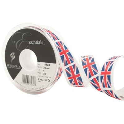 Union Jack Flag Ribbon 25mm & 35mm Berisfords Satin Per Metre