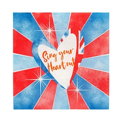 Sing your heart out as you watch the Eurovision Song Contest 2023 Hosting a Eurovision party? Use these Union Jack napkins to cheer on the United Kingdom whilst keeping you and your guests fuelled on party food! ECO-FRIENDLY - These disposable paper napkins and their packaging are recyclable. Instead of using plastic packaging we have included an extra napkin at the front of pack to keep the rest clean MIX & MATCH - To complete the look, shop our matching union jack plates and Eurovision Party Decorations These can be found in our Amazon store, Manufacturer: Talking Tables