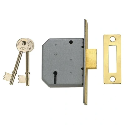General description The Union 2177 3-lever mortice deadlock is designed for timber doors hinged on either side, suitable for doors up to 54mm thick. The deadbolt is operated by a key from both sides and features a 12.5mm anti-saw deadbolt for enhanced security. It includes a brass deadbolt with hardened steel rollers and is supplied with two nickel-plated steel keys. The strike plate is finished to match the satin chrome forend, providing a cohesive appearance. Technical specifications Finish: Satin Chrome Case Size: 77.5mm x 70mm (3 inches) Backset: 57mm (distance from door edge to center of keyhole) Deadbolt: Brass with hardened steel rollers Rebate Kit: Available in 13mm, 19mm, or 25mm options Keys: Supplied with 2 nickel-plated steel keys Security Level: 2-5 levers (higher number indicates higher security) Compatibility and accessories Compatible with timber doors up to 54mm thick Can be keyed alike with models 2077, 2157, 2277, and 2477 Rebate kits for different door thicknesses
