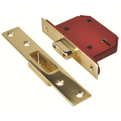 Union's StrongBOLT 5 Lever Mortice Deadlock is a security solution designed to enhance the safety and protection of your property. With a polished brass finish, this mortice deadlock not only offers robust security features but also adds a touch of elegance to your door.