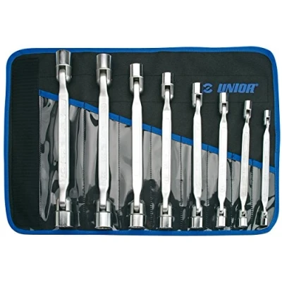 Material: Chrome Vanadium Drop forged Chrome-plated Double joint socket spanner set in roll-up case/8 – 22/8, Weight: 4.67820919964 Pounds, Manufacturer: Unior D.D.