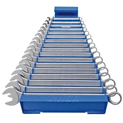 Unior U605539 Set of Combination Wrenches, Short Type On Metal Stand