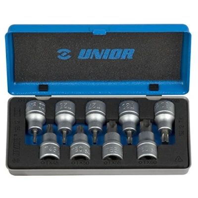 Unior Set of Screwdriver Sockets with TX Profile 1/2in In Metal Box, /9 603657