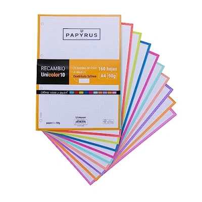Unipapel 53392499 Refill 160 A4 Sheets, 10 Bands Colour, 5 x 5, 90 g, Papyrus Plain