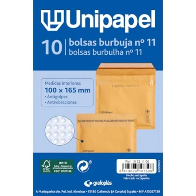 Optimum protection: This package contains 10 kraft envelopes with bubble bag inside, providing great protection to your shipments against bumps and falls SELF ADHESIVE CLOSURE: Each bubble bag has a self-adhesive strip, which ensures that your shipments arrive intact at their destination. Its opening is easy, but tamper-proof CHOOSE YOUR SIZE: This pack contains #11 kraft envelopes with a useful capacity of 10x16.5cm. If you need another size, you can find packs of different sizes Friends of the Environment: Made in Spain with FSC certified materials, these shipping envelopes are an eco-friendly option that contributes to responsible forest management. Versatility of Use: Ideal for sending fragile products or documents, ensuring the integrity of the content.