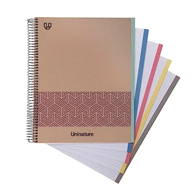 ✔ 100% Recycled Notebook: 100 sheets of 5x5 graph paper, 90 g, with 5 color bands on the side ✔ Made in Spain with cardboard, Kraft and 100% recycled paper, FSC Recycled Credit, guarantees that forest materials are 100% recycled, minimizing the environmental impact. ✔ A4 size ✔ Rigid and soft touch caps: made of kraft lined cardboard and soft plasticised ✔ This spiral notebook has a stylish geometric inspired design. Model: Uninature Concept Violeta. The inks used are environmentally friendly, plant-based without mineral oils or volatile organic compounds
