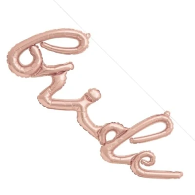 1 Rose Gold "Bride" Foil Letter Balloon Banner Kit Includes: 1 Bride word balloon (90 cm x 35 cm), twine (2.74 m), 1 straw Inflate with air only, do not use with helium Air fill balloons using the included straw Combine with other rose gold party supplies from Unique Party, Manufacturer: Unique Party
