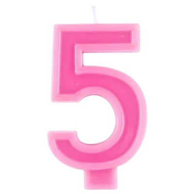 Unique 11795 Birthday Candle 9 cm Raised Border Shape Number 5 Pink Colour 1 Count (Pack of 1)