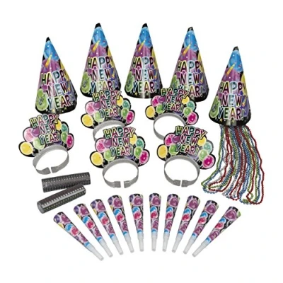 1 New Years Eve Party Kit for 10 Party Kit includes: 5 New Years Eve party hats, 5 tiaras, 10 horns, 10 bead necklaces and 2 rolls of party streamers (36 throws) A convenient and affordable way to accessorise guests ready for the countdown at a New Years Eve party Hand out noisemakers, streamers and confetti just in time for midnight, or use as festive table decorations Coordinate with other New Year party supplies and New Years Eve decorations from Unique Party, Manufacturer: Unique Party