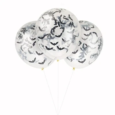 Pack of 5 Clear Latex Balloons with Bat-Shaped Confetti Latex balloons measure 40 cm when fully inflated (ship flat) Clear balloons come pre-filled with bat-shaped confetti Inflate with helium or air via a hand-pump (do not fill confetti balloons with air by mouth) Combine with other Halloween party supplies from Unique Party, Manufacturer: Unique Party