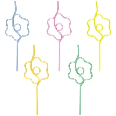 Unique 23672 Reusable Daisy Shaped Plastic Straws Groovy Birthday Party 5 Count (Pack of 1), Multicolour