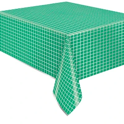 Unique 25723 Plastic Foil Tablecloth 2.13 m x 1.37 Silver & Bright Green Party 1 Count (Pack of 1)
