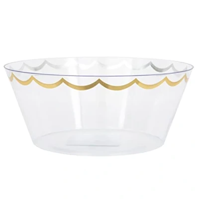 Unique 28755 Reusable Plastic Serving Bowl 25 cm Gold Foil Stamped 1 Count (Pack of 1)