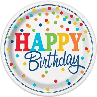 Pack of 8 Rainbow Polka Dots Party Plates Paper plates measure approximately 23 cm in diameter Ideal for serving food at a rainbow birthday party Disposable plates are 100% plastic free Combine with other Rainbow Polka Dots party supplies from Unique Party, Manufacturer: Unique Party