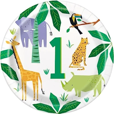 Pack of 8 Animal Safari 1st Birthday Party Plates Paper plates measure approximately 23 cm in diameter Ideal for serving food at an animal safari 1st birthday party Disposable plates are 100% plastic free Combine with other Animal Safari party supplies from Unique Party, Manufacturer: Unique Party