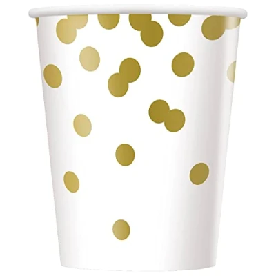 Pack of 8 White & Gold Confetti Dots Paper Cups Paper cups hold approximately 266 ml Ideal for serving drinks at any special occasion Disposable cups make cleaning up quick and easy Combine with other White & Gold Confetti Dots party supplies from Unique Party, Manufacturer: Unique Party