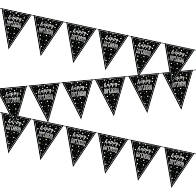 1 Glitz Black Happy Birthday Bunting Banner Bunting measures 2,74 m in length Ideal for decorating a black themed birthday party Hang on a wall or a photo booth backdrop Combine with other Glitz Black Birthday party supplies from Unique Party, Manufacturer: Unique Party
