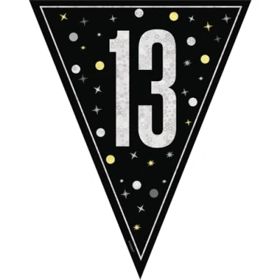 1 Glitz Black 13th Birthday Bunting Banner Bunting measures 2,74 m in length Ideal for decorating a black themed 13th birthday party Hang on a wall or a photo booth backdrop Combine with other Glitz Black Birthday party supplies from Unique Party, Manufacturer: Unique Party