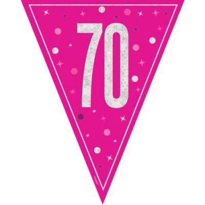 1 Glitz Pink 70th Birthday Bunting Banner Bunting measures 2,74 m in length Ideal for decorating a pink themed 70th birthday party Hang on a wall or a photo booth backdrop Combine with other Glitz Pink Birthday party supplies from Unique Party, Manufacturer: Unique Party