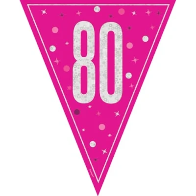 1 Glitz Pink 80th Birthday Bunting Banner Bunting measures 2,74 m in length Ideal for decorating a pink themed 80th birthday party Hang on a wall or a photo booth backdrop Combine with other Glitz Pink Birthday party supplies from Unique Party, Manufacturer: Unique Party