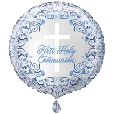1 Foil Blue Holy Cross Communion Balloon Foil balloon measures 45 cm when fully inflated (ships flat) Ideal for decorating a Communion celebration Self-sealing balloon can be filled with helium or air via hand pump Combine with other Blue Holy Cross religious party supplies from Unique Party, Manufacturer: Unique Party