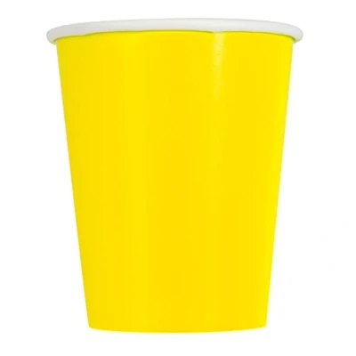 Unique 82200 Paper Cups 266 ml Neon Yellow Colour 8 Count (Pack of 1)