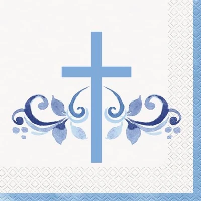 Unique 82232EU Paper Napkins 16.5 cm Blue Holy Cross Religious Party 16 Count (Pack of 1)