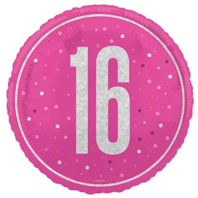 1 Foil Glitz Pink 16th Birthday Balloon Foil balloon measures 45 cm when fully inflated (ships flat) Ideal for decorating a pink themed 16th birthday party Self-sealing balloon can be filled with helium or air via hand pump Combine with other Glitz Pink Birthday party supplies from Unique Party, Manufacturer: Unique Party