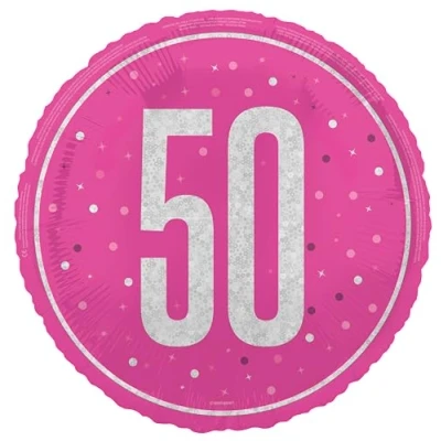 1 Foil Glitz Pink 50th Birthday Balloon Foil balloon measures 45 cm when fully inflated (ships flat) Ideal for decorating a pink themed 50th birthday party Self-sealing balloon can be filled with helium or air via hand pump Combine with other Glitz Pink Birthday party supplies from Unique Party, Manufacturer: Unique Party